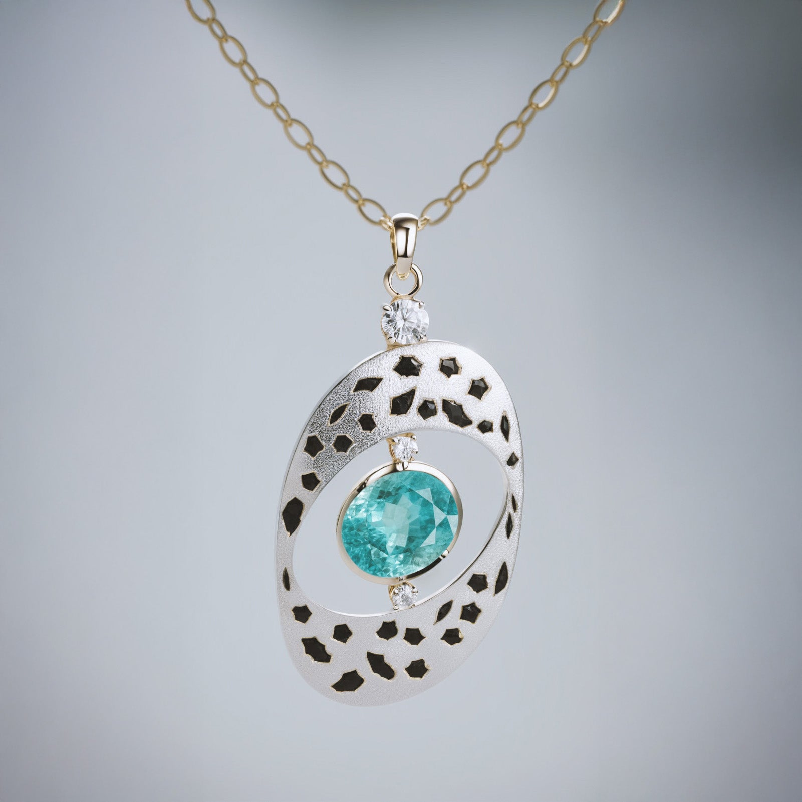 Noon Harmony Necklace – White Gold, Teal Sapphire & Onyx